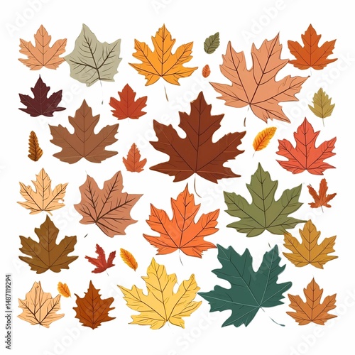Autumn Maple Leaves Collection Colorful Fall Foliage Illustration