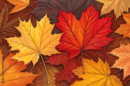 Autumn maple leaves isolated on a white background, a colorful mix of red, orange, and yellow foliage