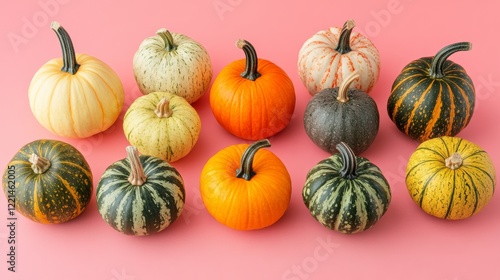Autumn Pumpkins Flat Lay on Pink Background for Fall Decor Inspiration