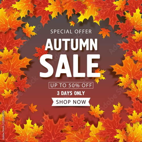 sale, autumn, shopping, discount, leaf, fall, maple, leaf, frame, nature, orange, season, red, yellow, isolated, foliage, tree, border, white, abstract, colours, green, decoration, bright, plant, october, thanksgiving, seasonal, banner, special, offer, shop