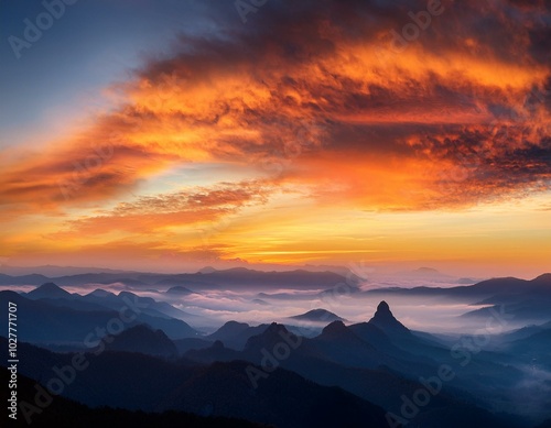 autumn sunrise cloudy sky over mountains abstract colorful peaceful sky background