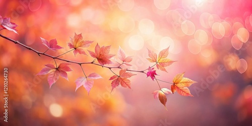 Autumnal Branch with Vibrant Red and Orange Leaves Against a Soft Bokeh Background