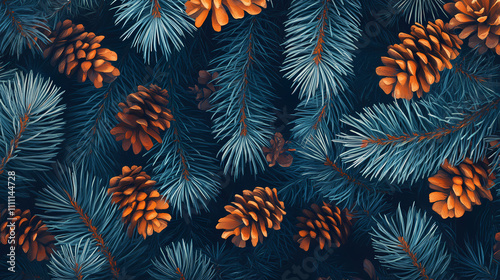 Autumnal fir needles, nocturnal tapestry, seamless design. Nocturnal. Illustration