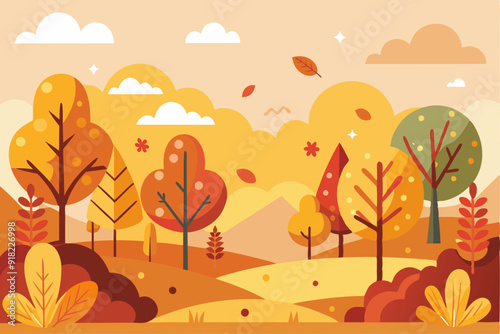 Autumnal Landscape with Colorful Trees and Falling Leaves