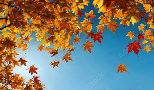 autumn, leaf, frame, border, blank, space, sky, blue, fall, autumn, foliage, background, sun, sunlight, nature, orange, season, generated, ai