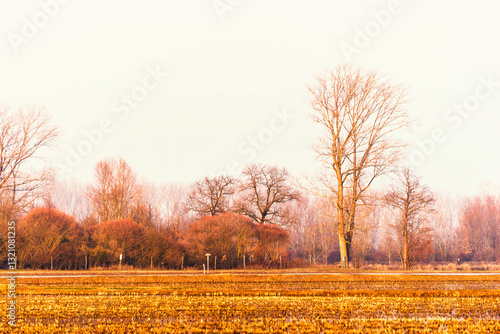 autumnal sunset over a rice farm, Giussago, Pavia, Italy