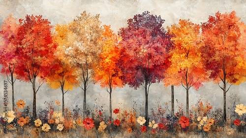colourful, tree, colours, seasonal, serene, autumn, garden, scenery, decor, floral, illustration, leaf, painting, foliage, view, tranquil, nature, plant, textured, flower, peaceful, background, calm, detail, colours, high-coloured, autumn, landscape, impressionistic, art, vibrant, artwork, fall, painted, wood, image, forest, design, beauty