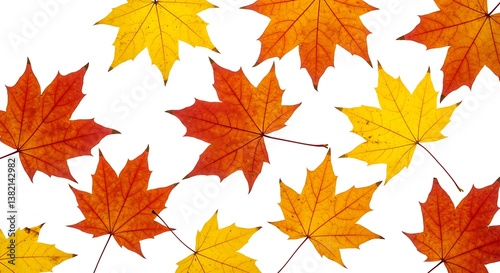leaf, leaf, maple, foliage, orange, red, yellow, colours, vibrant, nature, seasonal, background, texture, design, element, pattern, bright, colourful, plant, vegetation, scattered, arrangement, isolated, white, image
