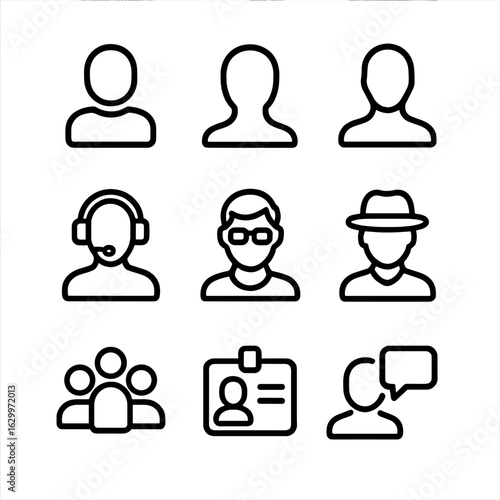 avatar, icon, set, outline, user, profile, head, silhouette, face, with, headset, goggles, hat, group, user, badge, speech, bubble, line, icon, only, black, colours, consistent, stroke, weight