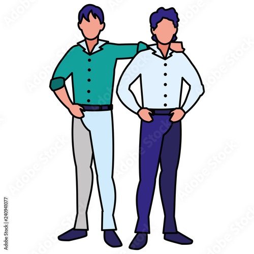 man, man, couple, friends, male, person, clothes, adult, casual attire, photogenic, cheerful, fashion, attractive, modern, head, face, clothing, clothes, vector, illustration, character, caricature, avatar, coiffure, cartoon, charming, body, user, masculine, nice