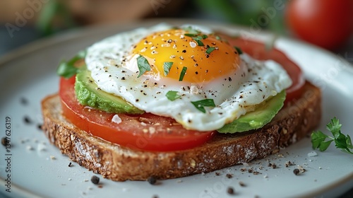 Avocado Toast with Poached Egg and Tomato – Delicious Breakfast Styled with Sea Salt and Black Pepper