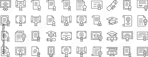 Award, Diploma, Certificate Related Line Icons for Web Sites, Books, Cards, Apps. Editable Stroke. Suitable for Web Sites, Books, Cards, Apps