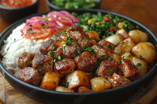 food, meat, meal, chicken, dish, dinner, beef, vegetable, tomatoes, sauce, pork meat, cooking, stew, cookery, pan, lunch, potato, hot, cooked, healthy, vegetable, delicious, fried, roasted, bowl