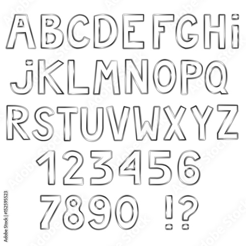 alphabet, metal, letter, number, industrial, isolated, education, question mark, exclamation mark, set, symbol, lettering, text, language, word, school, font, signs, vector, book, element, typography, graphic, preschool, illustration, read, reading, english, type, material, communicate, communication, surface, capital, white, background, aluminium, aluminium, steel, lead, pure, industry, metallic