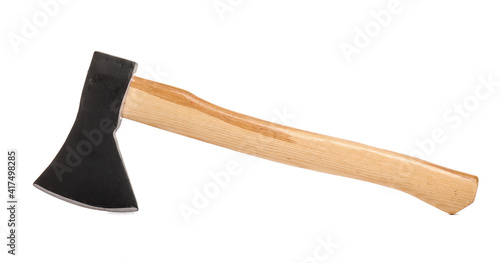 Ax with wooden handle on white background