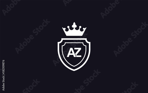 AZ Crown and shield symbol icon. royal luxury shield monogram