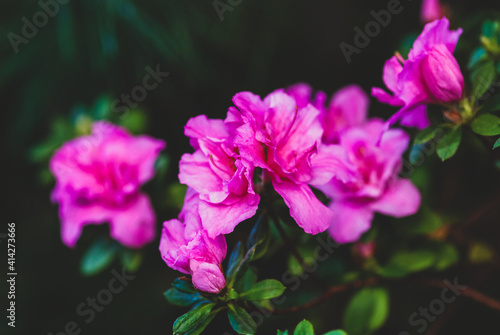 azalea, pink, flowering, flower, azalea, alpine rose, dark, moody, beautiful, bloom, blooming, blurred, botanical, botany, bright, ericaceae, flora, floral, flower, garden, gardening, green, greenhouse, photo, plant, purple, rhododendron, selective focus, shrub, spring, stock, winter garden, style, toned, trend, trendy, shade, shadow, dusk, evening, night, atmospheric, closeup