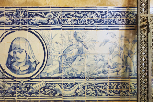 Azulejos panels in the gardens of a palace in Estoi, Algarve, Portugal