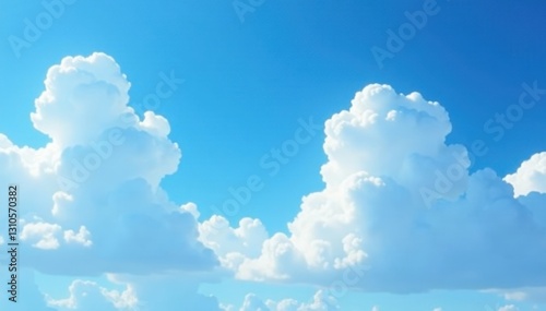 Azure sky, fluffy white cumulus clouds, sunny summer day , background, meteorology