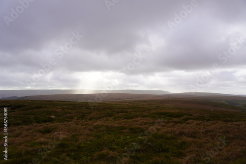 B29 OVEREXPOSED Crash Site, The Peak District, England – June 8 2022: Sun rays illuminate the historic B 29 Superfortress crash site in The Peak District, England.