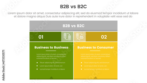 b2b vs b2c difference comparison or versus concept for infographic template banner with box table box with union with two point list information