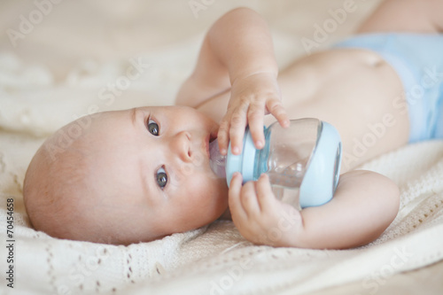 adorable, baby, beautiful, bed, beige, blanket, blue, boy, caucasian, children, childhood, closeup, cute, face, funny, girl, happy, human, diaper, infant, innocence, innocent, children, little, lying down, newborn, 1, person, portrait, small, smile, soft, studio, bottle, nipple, drinking