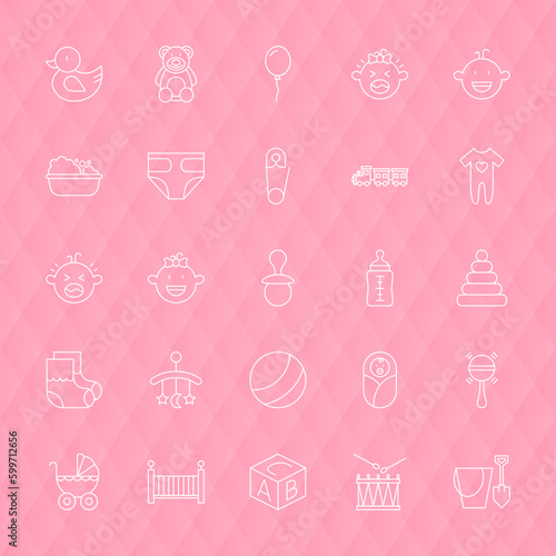 design, female, girl, line, colours, children, baby, signs, children, illustration, bed, linear, image, care, pink, expression, newborn, duck, childlike, icon, toy, diaper, person, bottle, balloon, bear, outline, picture, rocking, boy, dummy, soother, carriage, pushchair, teddy, rattle, cube, crib, juvenile, abstract, object, set, background, male, color image, rock, vector