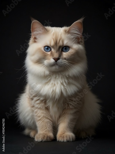 Baby Birman cat standing, isolated on black background.