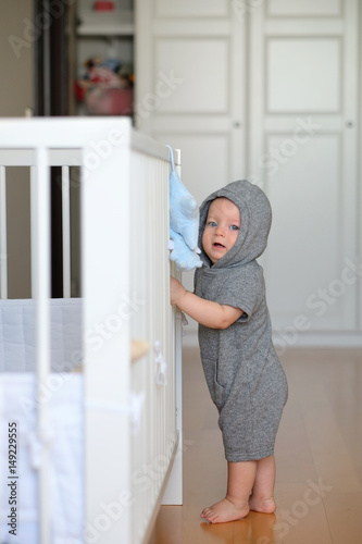 baby, children, crib, standing, learning, toddler, walk, hold, home, indoor, hood, hoodie, blond, boy, smile, bed, blue, eye, bedchamber, wooden, cot, childcare center, infant, newborn, portrait, cute, adorable, children, little, care, family, beautiful, small, young, childhood, people, caucasian, new life, indoor, human, innocence, healthy, happy, happiness, sweet, cheerful, 1, son, offspring