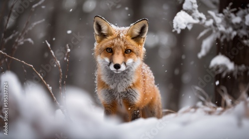 Baby fox in arctic snow landscape generative ai