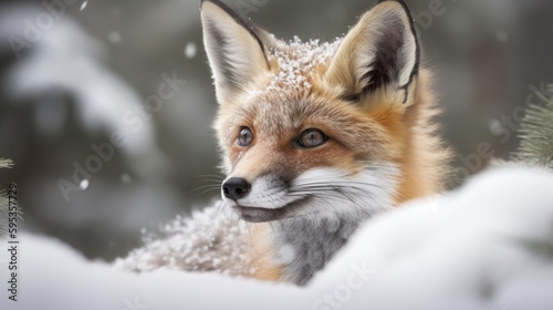 baby, fox, snow, winter, baby animal, scene, red, cute, family, nature, white, animal, orange, face, portrait, eye, young, watch, mammal, wildlife, canino, predator, carnivore, fur, nose, predatory, hunt, vulpes, hunter, burrow, outdoors, furry, beast, alert, stare, snowy, brown, look, hole, closeup, wild, little, generative, ai
