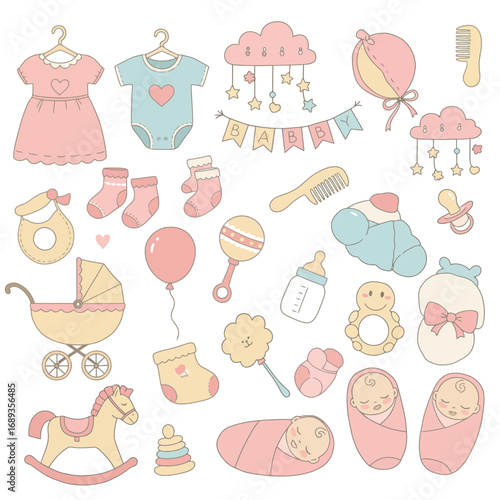 baby, girl, set, illustration, design, vector, element, new, born, cute, little, newborn, shower, children, children, birth, birthday, love, graphic, art, cartoon, sweet, collection, pink, nubes, apparel, celebration, decoration, drawing, happy, holiday, children, party, print, background, clothing, colourful, decorative, doodle, fabric, fashion, festive, fun, hand, invitation, joy, pattern, textile