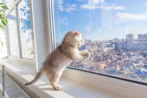 baby kitten is sitting on the window