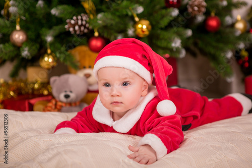 christmas tree, santa, santa, baby, background, ball, boy, children, christmas, costume, decor, decoration, festive, garland, girl, holiday, holiday, infant, light, new year, newborn, people, toddler, winter
