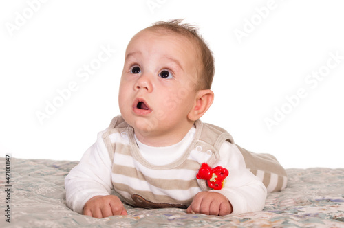 attractive, baby, background, beautiful, bed, caucasian, children, clothes, comfort, health, children, little, newborn, 1, only, people, person, portrait, small, sofa, tiny, toddler, white