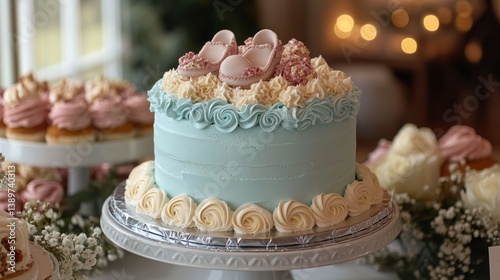 cake, baby, shower, pink, blue, pastel, sweet, dessert, food, decoration, cream, frosting, rose, shoe, cupcake, party, celebration, delicious, elegant, pretty, baby girl, baby boy, event, catering, homemade, whipped cream, floral, small, light, festive, delicate, birthday, cute