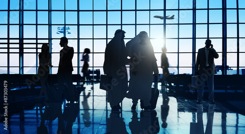 aeroplane, aerodrome, backlit, building, business, businessperson, business travel, businessman, businesswoman, city, city landscape, colleague, commuter, corporate, baggage, man, middle eastern, occupation, office, business building, passenger, people, people traveling, professional occupation, reflections, rush hour, silhouette, skyline, skyscraper, suitcase, sunset, team, terminal, travel, traveling, walking, window, woman
