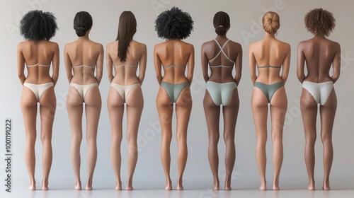 woman, backview, swimwear, diverse, line, body, diversity, fashion, swimwear, summer, group, female, standing, multiple, girl, confidence, beauty, skin, beach, lifestyle, natural, identity, wellness, self, healthy, happiness, oneness, fitness, style, body, youth, woman, art, person, concept, redhead, object, bright, wearing, studio, coiffure, personable, people, model, mastery, make-up, lady