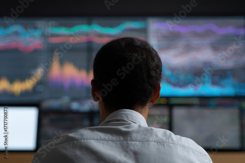 datum, analysis, financial, screen, person, backview, graph, chart, technology, business, office, work, professional, finance, stock exchange, trading, monitor, digital, information, economy, investment, strategy, research, statistic, workplace, corporate, sharpened, concentration, number, display, tech, management, decision-making, market, trend, business attire