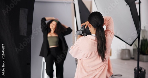 back, woman, studio, photographer, fashion, model, camera, creative, professional, pose, design, media, designer, picture, photo, mag, advertising, set, production, photoshoot, process, female, girl, people, adult, technology, person, men at work, digital, confident, clothes, art, image, job, style, glamour, trendy, cool, company, workplace, equipment, communication, project, career, agency, film, occupation, lighting, lens