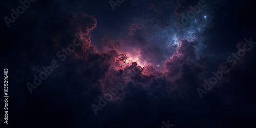 Background Of Cosmic Nebula With Dark Swirling Clouds Illuminated By Vibrant Red And Blue Hues