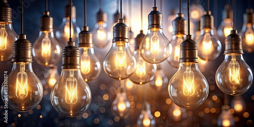 Background of floating light bulbs with glowing filaments, casting an ethereal glow , ethereal, floating