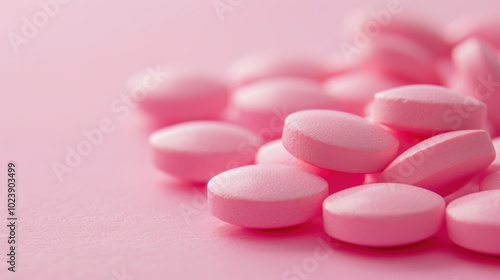 Background of pink capsules. Concept of health supplements and scientific research in medicine