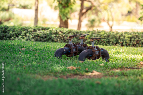 Background of plants that are grown in nursery bags, propagated or decorated flower gardens, with the blurring of the wind blowing through.