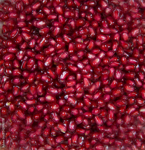 Background of red ripe pomegranate seeds. Raw organic fruits vegetables. Useful product.