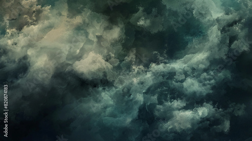 Background of Renaissance Dark Stormy Clouds: Brooding Cyan Teal Turquoise Nightfall Chiaroscuro