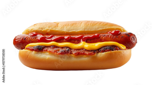 background removed Delicious hot dog with mustard, onions, and bell peppers served in a sesame seed bun, perfect for a summer cookout