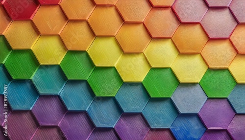 background texture of symmetrically arranged hexagons painted in the colors of the LGBT flag