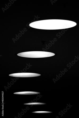 light, lamp, dark, bulb, night, black, three-dimensional, design, illustration, space, object, symbol, light, spotlight, lighting, ceiling, pattern, abstract, white, building, architecture, cycle, round, effect, effect, lamp, subway, underground, flying saucer
