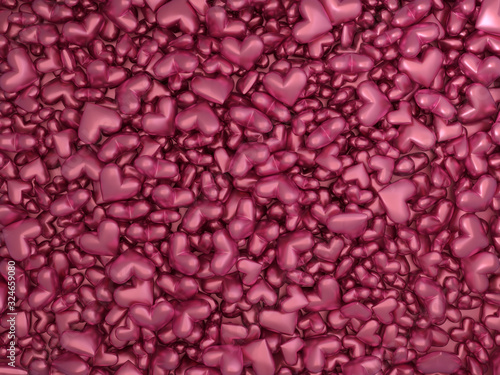 background with hearts, view from above, valentines day. 3d illustration